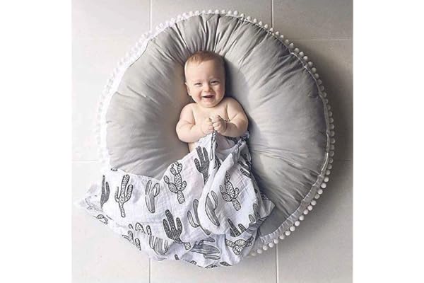 Big Circle Baby Pillow, Round Floor Pillows Seating for Infant Toddler Child, Oversized Pillow Mat for Reading Nook Teepee Playroom Nursery Canopy, Grey