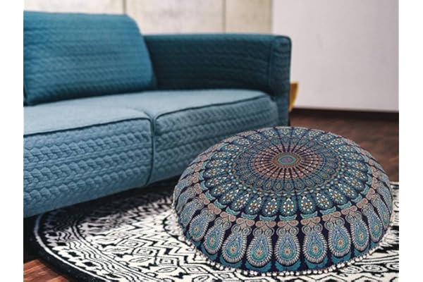 Mandala Floor Pillow Cushion Meditation Seating Ottoman Throw Hippie Decorative Round Bohemian Pouf Blue Large Shams Outdoor Boho Flower Decor Designs Comfortable Bed Sofa Pouffe Women (Cover Only)