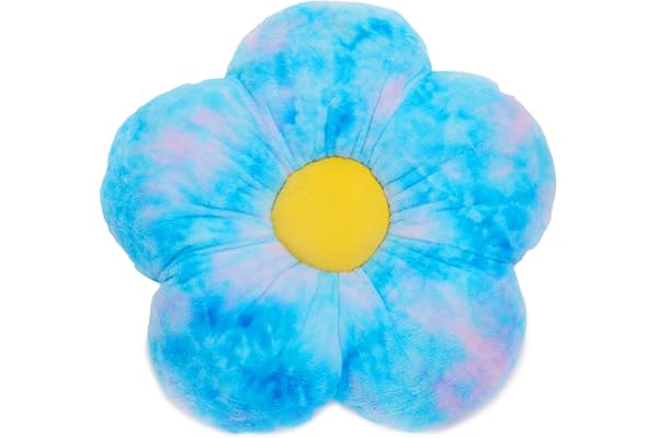 Butterfly Craze Large Blue Tie Dye Daisy Pillow: Flower-Shaped Lounge Pillow, Seating Cushion
