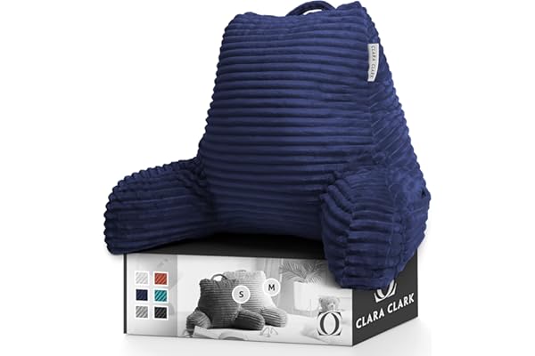 Medium Back Pillow, Back Support Pillow, Shredded Memory Foam Bed Rest Pillow with Arms, Navy Blue