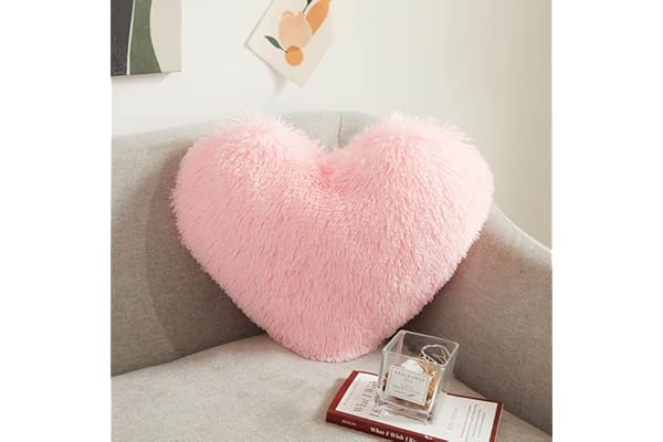 15"x17" Cute Double-Sided Faux Fur Heart Pillow, Fluffy Heart Shaped Pillow with Insert, Furry Accent Pillow for Girls/Women/Kids/Children Gift, Pink