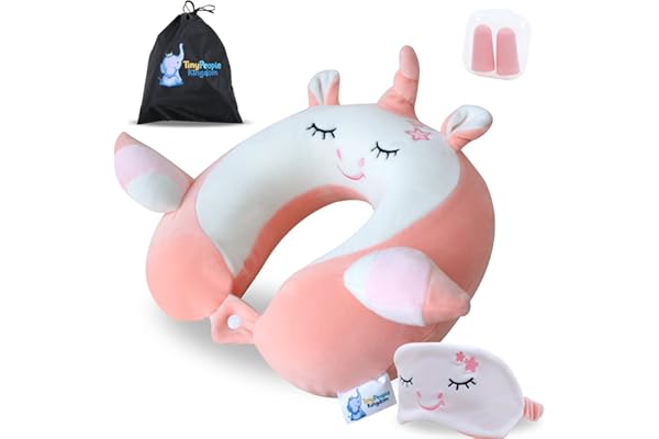 Full Set with Super Soft Memory Foam Pillow, Sleep Mask & Earplugs . Comfy Travel Pillow for Kids by TPkingdom