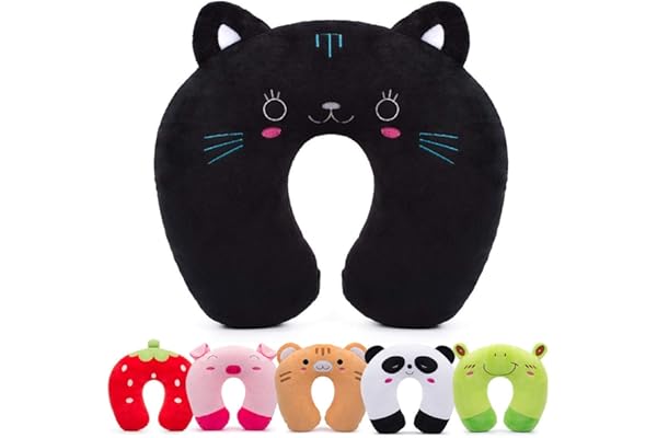 Cute Animal,Comfortable in Any Sitting Position for Airplane,Car,Train,Machine Washable,Children Gift (Black cat)