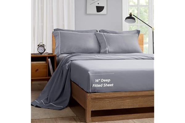 Deep Pocket Bed Sheets King Soft Brushed Microfiber, 1800 Hotel Luxury Bed Sheets Set, Wrinkle and Fade Resistant, Grey