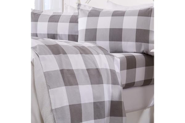 100% Turkish Cotton Buffalo Check Plaid King Flannel Sheets Set