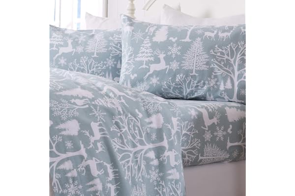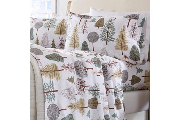 Deep Pocket, Soft Winter Sheets | Warm, Double Brushed Bed Sheets | Anti-Pill Flannel Sheets by Great Bay Home (Queen, Snowy Forest)