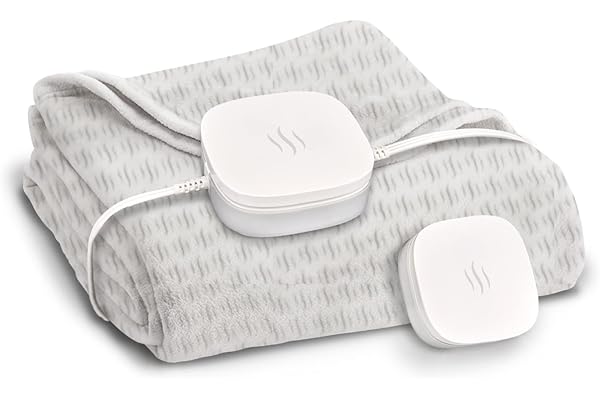 Zone Heating Electric Bed Warmer with Deep Pocket, 10 Heat Setting Dual Controller & 1-12 Hours Auto Shut Off, King, White