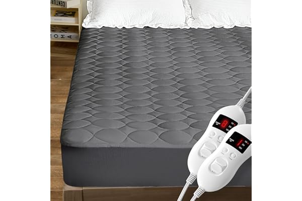 Quilted Cotton Electric Bed Warmer with 10 Heat Setting Dual Controller | 1-12 Hours Auto Shut Off | 17" Deep All Around Elastic Pocket, King