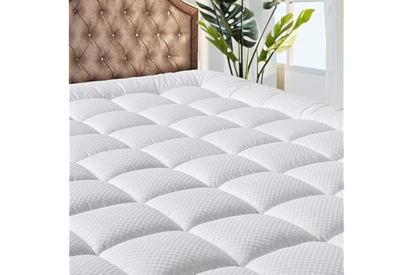 Extra Thick Mattress pad Cover, Plush Soft Pillowtop with Elastic Deep Pocket, Overfilled Down Alternative Filling