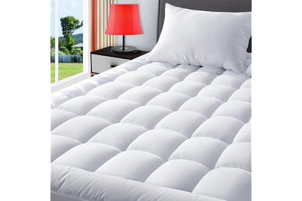 Extra Thick Cooling Mattress Pad Cover, Down Alternative Overfilled Plush Pillow Top with 8-21 Inch Deep Pocket