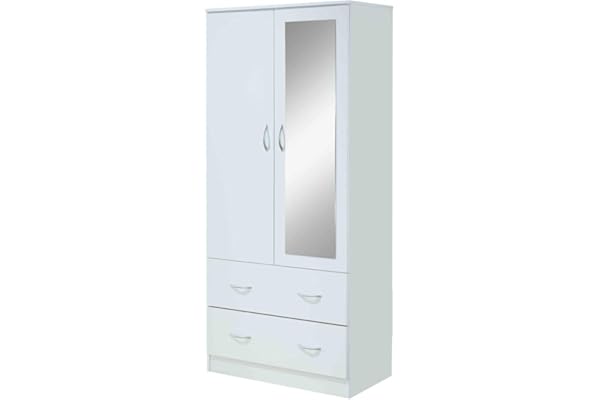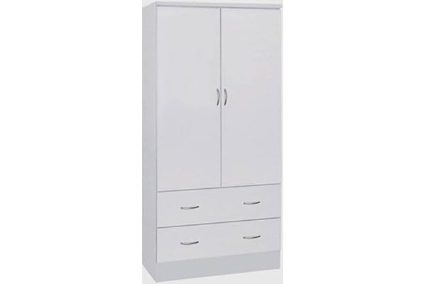 with Two Drawers, and Hanging Rod, White.