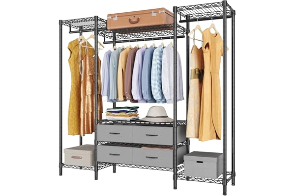 3 Hang Rods, 4 Fabric Drawers, Compact Freestanding Closet Storage Organizer, Black