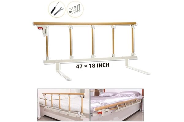Bed Rails for Elderly Adults Assist Rail Medical Safety Assisting Guard Rails Bed Railing Cane Bedside Handle Slides Under Mattress Grab Bar for Bed Hospital Swing Down Handrail (47x18inch)
