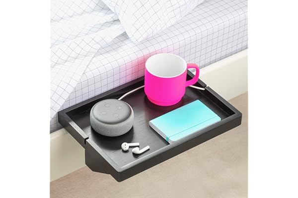 BedShelfie Wood Bedside Shelf for Bed & Bunk Bed Shelf College Dorm Room Essentials Tray Table Caddy for Top Bunk Organizer As Seen On Business Insider Clip-On Nightstand (Original Size, Black Bamboo)