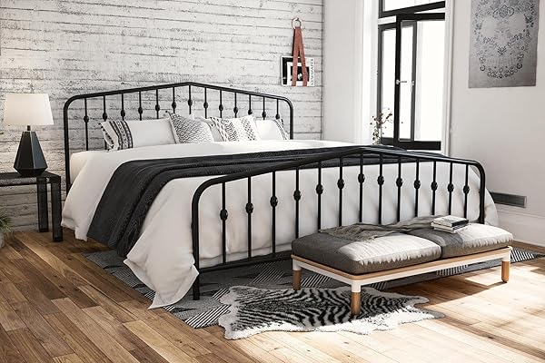 Novogratz Bushwick Metal Bed, Modern Design, King Size