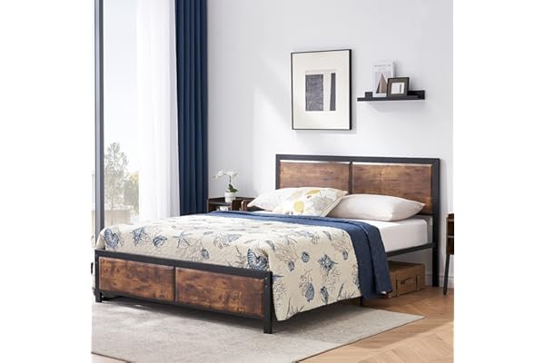 Amazon Basics Metal Platform Bed Frame with Wood Slat Support