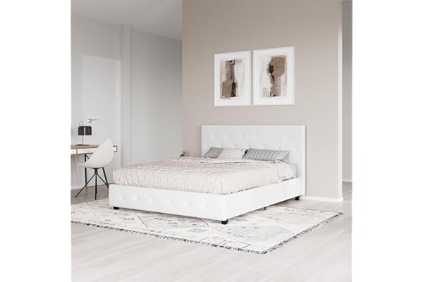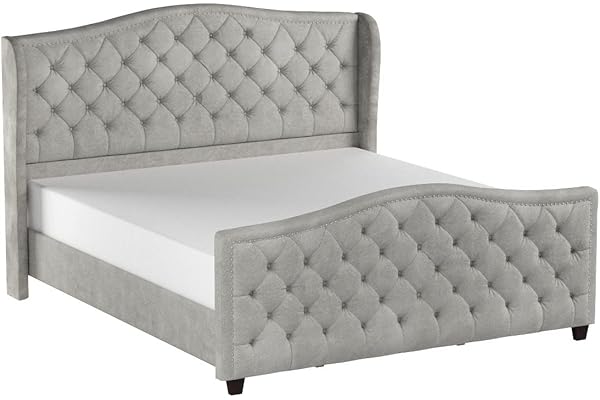 DHP Dakota Upholstered Platform Bed with Diamond Button Tufted Headboard and Footboard