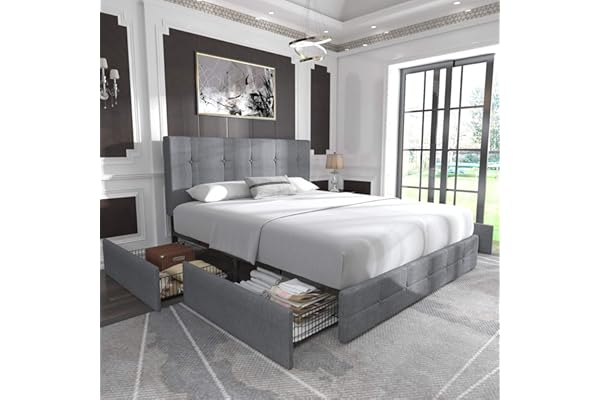 Allewie Upholstered Queen Platform Bed Frame with 4 Drawers Storage