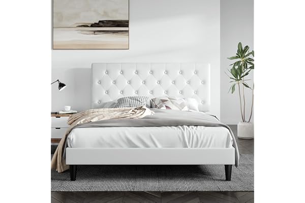 SHA CERLIN Full Size Platform Bed Frame with Button Tufted Headboard