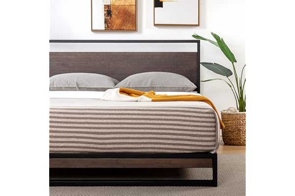 ZINUS Mia Metal Platform Bed Frame with Headboard / Wood Slat Support / No Box Spring Needed / Easy Assembly