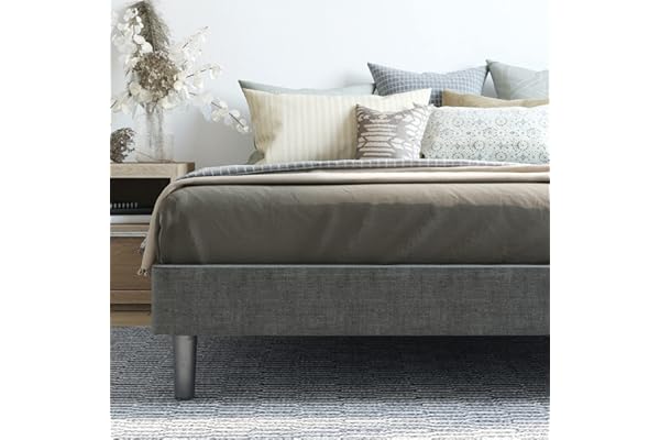 ZINUS Curtis Upholstered Platform Bed Frame / Mattress Foundation / Wood Slat Support / No Box Spring Needed / Easy Assembly