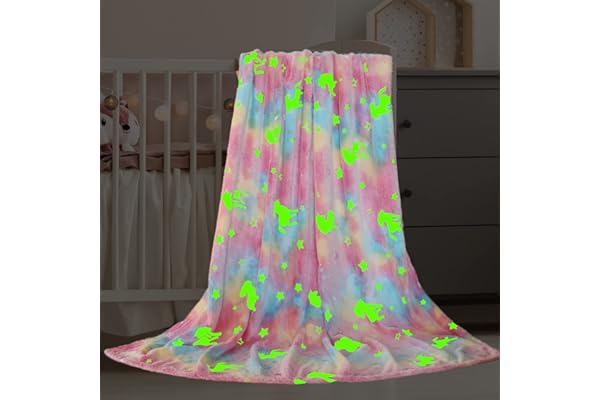 Cozwiv Glow in The Dark Blanket for 1-10 Year Old Girl Birthday Gifts Ideas Cool Unicorns Gifts for Age 1 2 3 4 5 6 7 8 9 10 Year Old Girl Surprise Toys for Girls Kids Toddler Blanket 50”X60”