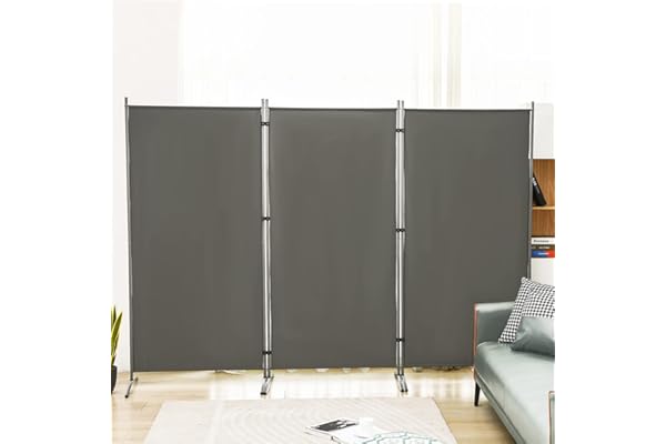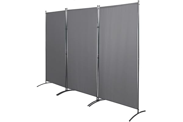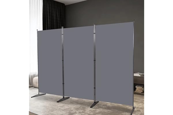 6 FT Tall Wall Divider with Metal Frame, Freestanding Room Divider for Office Bedroom Study (3 Panel, Grey)
