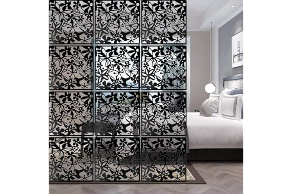 ANMINY 12 PCS Hanging Room Divider Flower Carving Pattern Panels Decorative Wall Screen Panel Hollow Out Design for Living Dining Room Kitchen Bedroom Office Bar Restaurant Home Hotel Decor