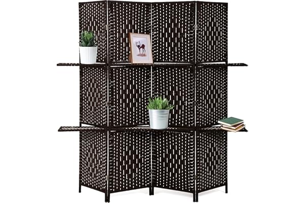 Room Divider Room Screen Divider Wooden Screen Folding Portable partition Screen Wood with Removable Storage Shelves Colour Brown