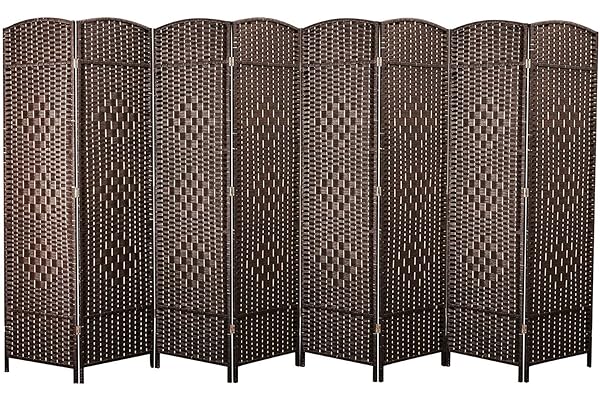 Natural Fiber Folding Privacy Screen with Stainless Steel Hinge & 8 Panel Room Screen Divider Separator for Decorating Bedding, Dining, Study and Sitting Room