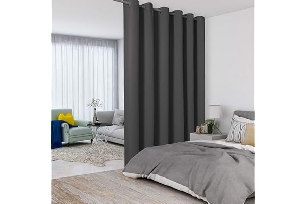 Bedroom Privacy Room Divider Curtain Screen Partitions, Thermal Insulated Blackout Patio Sliding Door Divider Curtain (1 Panel, 8.3ft Wide by 7ft Long, Gray)