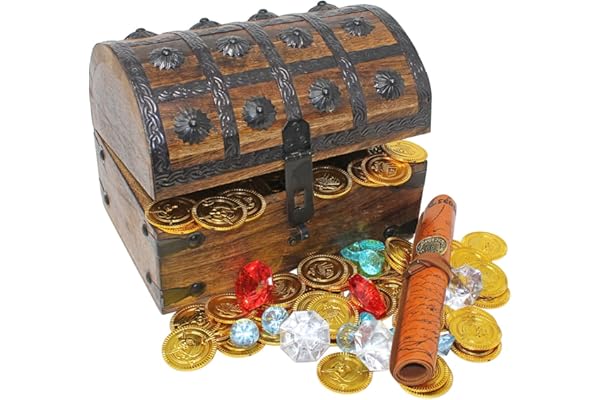 Nautical Cove Wooden Pirates Treasure Chest Box Pirate Treasure Map and Gold Coins/Gems