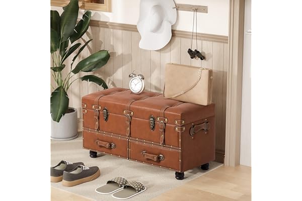 LONYKE Vintage Treasure Chest Bench with Latch Closure and Buckle Trunk