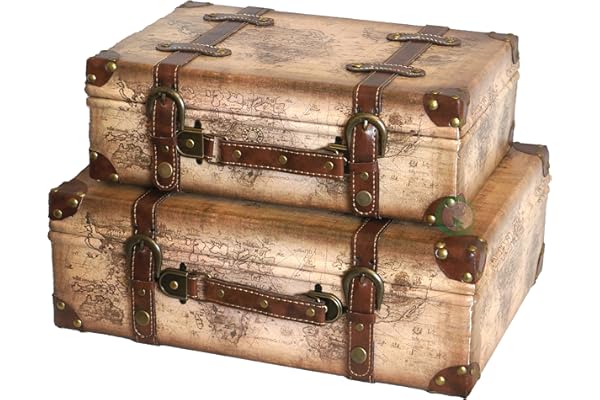 Vintiquewise(TM) Old World Map Leather Vintage Style Suitcase with Straps