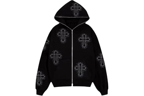 GIRSARRDER Women Jackets Zip Up Hoodie Women Cross Printed Oversized Hoodies Y2k Comfy Loose Fit Men Trendy Sweatshirts