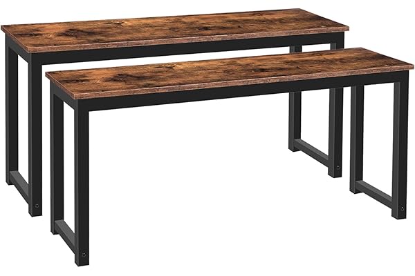 Pair of 2 Table Benches, Industrial Style Indoor Benches, Multifunctional Benches, Durable and Stable, for Dining Room, Kitchen, Living Room, Bedroom, Rustic Brown BF02CD01