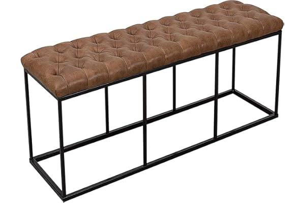 HomePop Faux Leather Button Tufted Decorative Bench with Metal Base