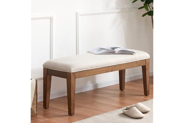Bedroom Bench for End of Bed, Dining Bench with Padded Seat for Kitchen, Living Room, Fabric Solid Wood Indoor Bench (Beige)