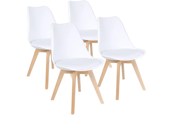Furmax Mid Century Modern DSW Dining Chair Upholstered Side Chair with Beech Wood Legs and Soft Padded Shell Tulip Chair for Dining Room Living Room Bedroom Kitchen Set of 4 (White)