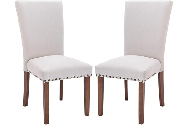 COLAMY Upholstered Parsons Dining Chairs Set of 2, Fabric Dining Room Kitchen Side Chair with Nailhead Trim and Wood Legs
