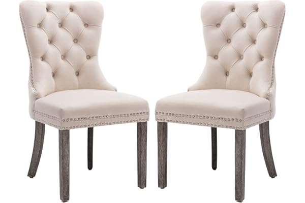 Wingback Dining Room Chairs with Ring Pull Trim and Button Back, Luxury Tufted Dining Chair for Living Room, Bedroom, Kitchen (Beige)