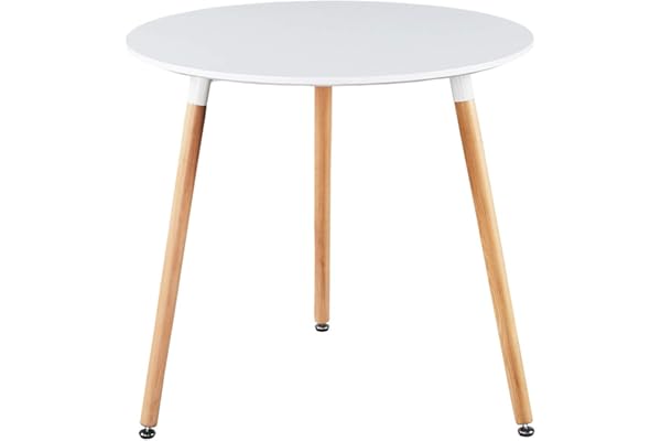GreenForest Dining Table White Modern Round Table with Wood Legs for Kitchen Living Room Leisure Coffee Table