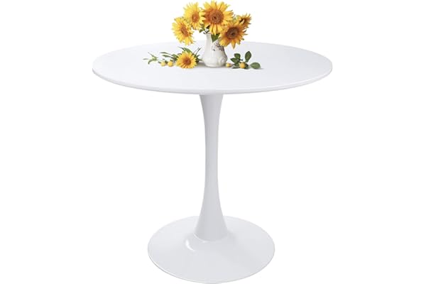 Modern Round Dining Table White 31.5" with Pedestal Base in Tulip Design