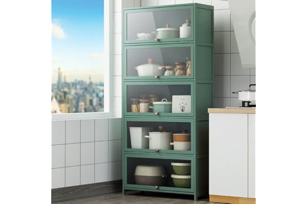 Kitchen Cabinet Storage Pantry Cabinet Closet Locker Home Garage Organizer Glass Display 5-Tier with Door Bamboo 68'' Bookcase Bookshelf Bookrack Large Space Hutch Freestanding