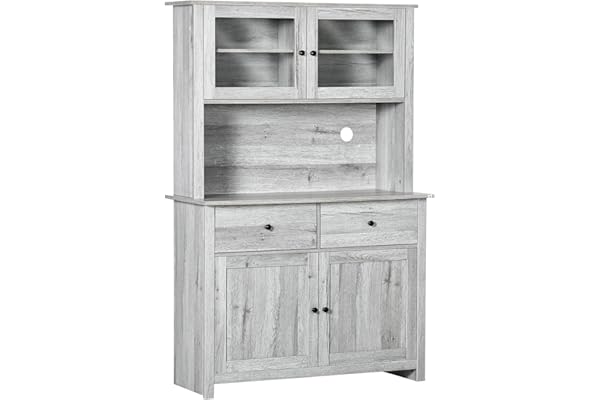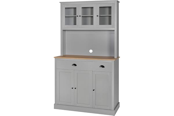 71'' Freestanding Hutch Cabinet with Buffet Cupboard, Drawers and Doors for Home, Grey