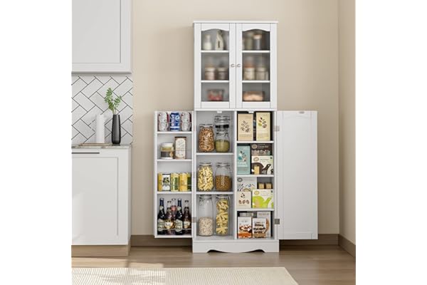 Farmhouse Pantries Organization Cabinet for Dining Room, Living Room, White