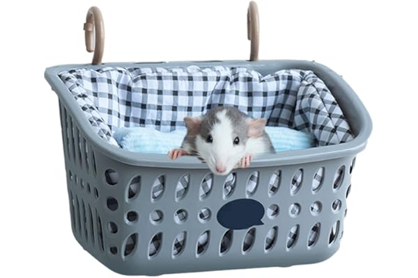 Rat Hammock Hanging Basket Warm Bed, Rat Cage Accessories and Habitats, Small Animals Removable Nest Mat for Hamster, Sugar Glider, Rat (Small, Grey)