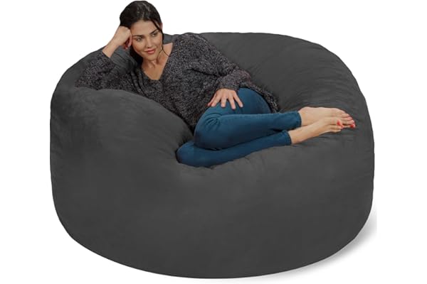 Ultra Soft Memory Bean Bag Chair Cover Stuffed Foam Filled Furniture and Accessories for Dorm Room, 5-Feet, Microsuede Charcoal