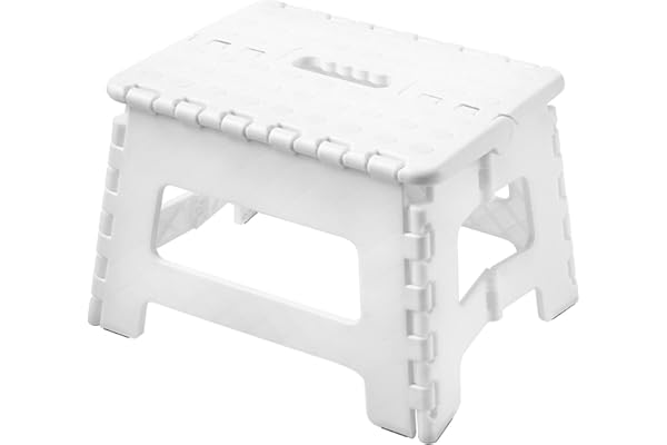 Collapsible 9" Tall White Plastic Step Stool for Kitchen - Foldable Step Stool for Adults - Safe Enough for Kids - Holds Up to 300 lb