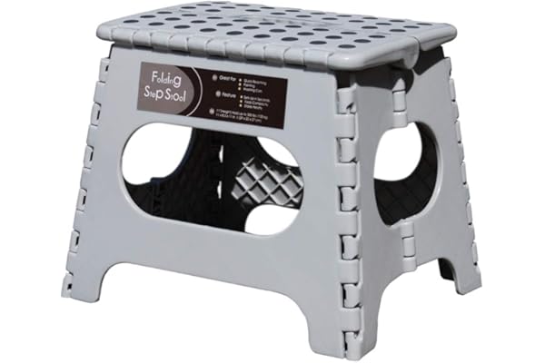 Holds up to 300 Lb - 11 inch Footstool for Adults or Kids, Folding Ladder Storage/Opens Easy, for Kitchen,Toilet,Camping (Light Grey, 11'')
